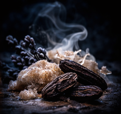 As it continues to unfold, the base reveals itself. Vanilla and amberwood rise through the warmth, supported by deeper resins and woods that give the fragrance structure and lasting depth.